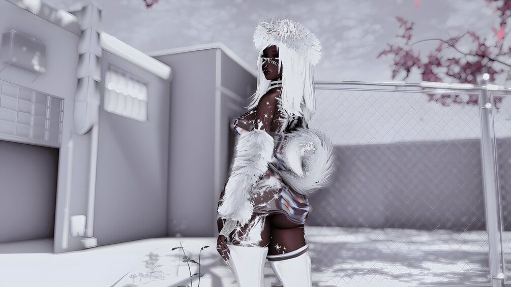 Eye texture, Face texture, Lashes, Body + Head (heavily sculpted NOT FOR REUSE) , Tattoo , Nails, Tall boots, Bag, Corset , Bow on corset , Cross chain , Necklace, Pasties ,Choker snowflake, Garter, Fur cuffs, Belly/Hip piercings, Pup ears ,Husky tail, Hair 1 Hair 2 Hair 3 Hair 4 Hair 5 Hair 6 ,Fur heart earrings, Ski goggles ,Earrings, Shades, Earmuffs ,Arm warmers ,Fur warmers, Chest chains ,Mini skirt, Leggings, Laced skirt ,Corset ,Mat caps, Hair textures ,Face stiches ,Dress ,Gloves ,Jacket ,Leg warmers ,Panties heart ,Panties bow, Sweater ,Thigh highs ,Cross bra ,Heart bra ,Fishnet sleeves ,Bodysuit top,Star bra, Moon boots ,Fur Boots ,Rings , Face Piercings, Fur Headband , Av3 , Heart gesture ,Gogo